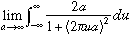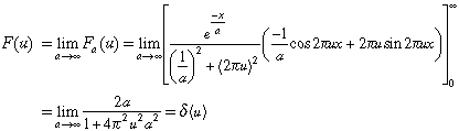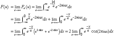 As a goes to infinity, the exponent goes to zero so the function becomes the constant we are seeking. Calculate the Fourier transform: