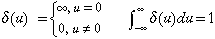 This satisfies two of the three properties of the delta function since the limit is infinity 0 or zero depending on whether or not u is zero. To test the third property, we need to evaluate the integral