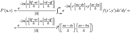 The question is this: if the Fourier transform of an image is known before affine transformation, how can it be used to calculate the Fourier transform of the image after affine transformation? In other words, if we know the image and it's Fourier transform: