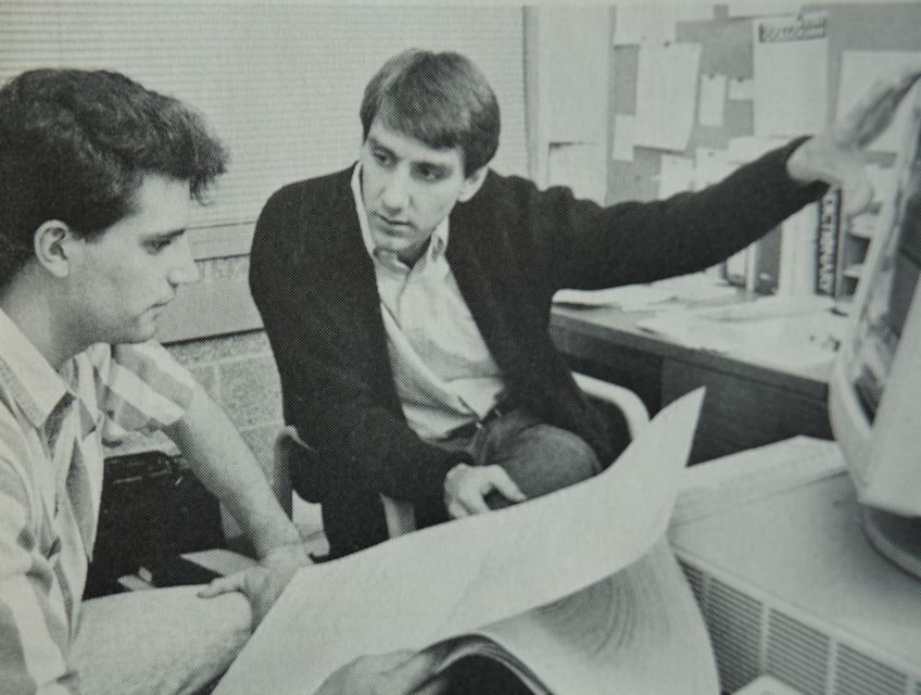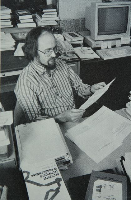"LISP courses just after lunch with professor Becker. It was warm, likely D-term... so hard to concentrate and yet he was always full of energy and passion. Larry Moe & Curly VAX Assembler programming." -- '90