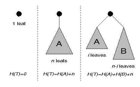 let T be a binary tree with n leaves and denote by H(T) the sum of depths of the leaves