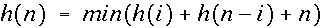 let h(n) be the smalles value for H(T) when T is a binary tree with n leaves (define h(0)=0)
